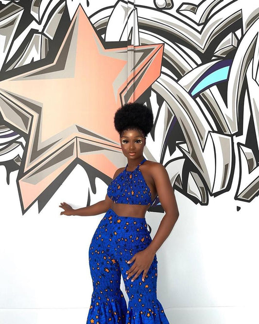 Blue African Ankara Plus Size Two Piece Crop Top and bell trouser