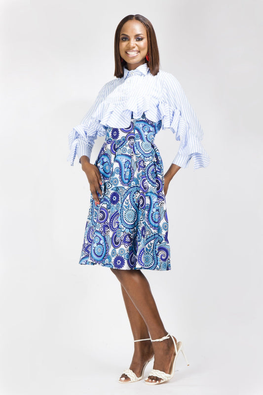 Blue African Ankara Print Fit & Flare Short Party Dress