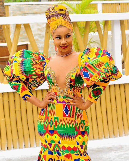 Yellow Multi African Kente Plus Size Clothing Party Maxi Dress