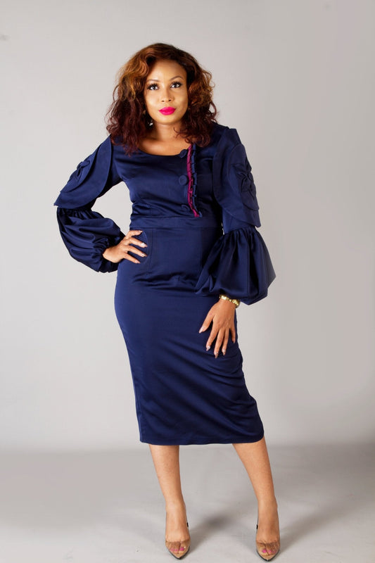 Blue Fitted Deconstruct Formal Midi Party Dress
