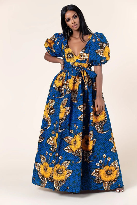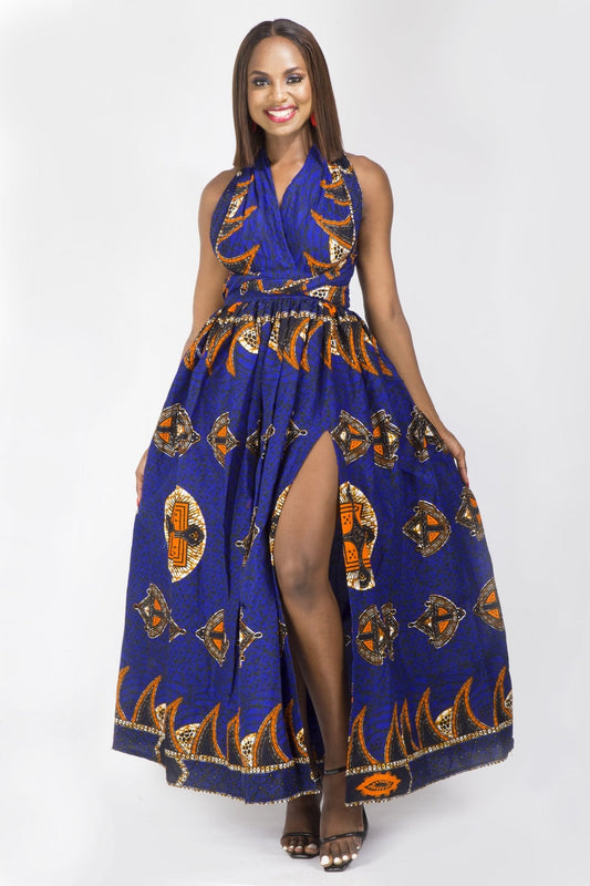 Blue African Ankara Print Plus Size Maxi Infinity Dress