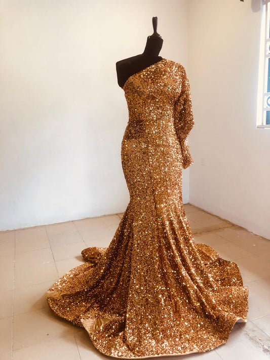 Gold Sequin Prom Dress, Custom Made Wedding Reception dress, Bespoke Party Dress, Statement Dress, Custom Birthday Dress