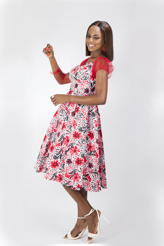 VESTIDO DE FIESTA BLANCO ROJO CON ESTAMPADO ANKARA MULTIAFRICANOS TALLA MÁS ROPA
