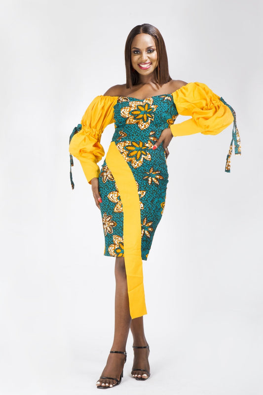 ROBE DE FÊTE COURTE VERT MENTHE JAUNE IMPRIMÉ ANKARA AFRICAIN TAILLE PLUS