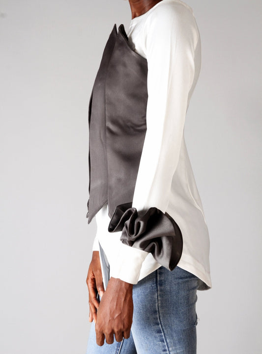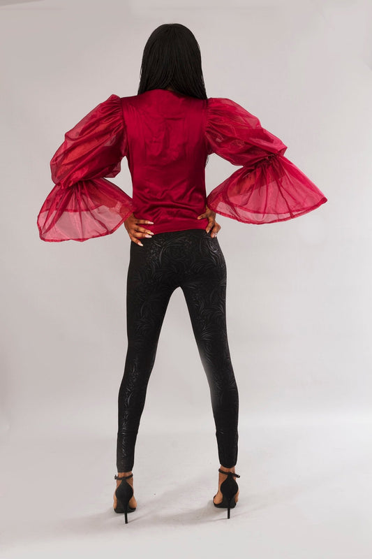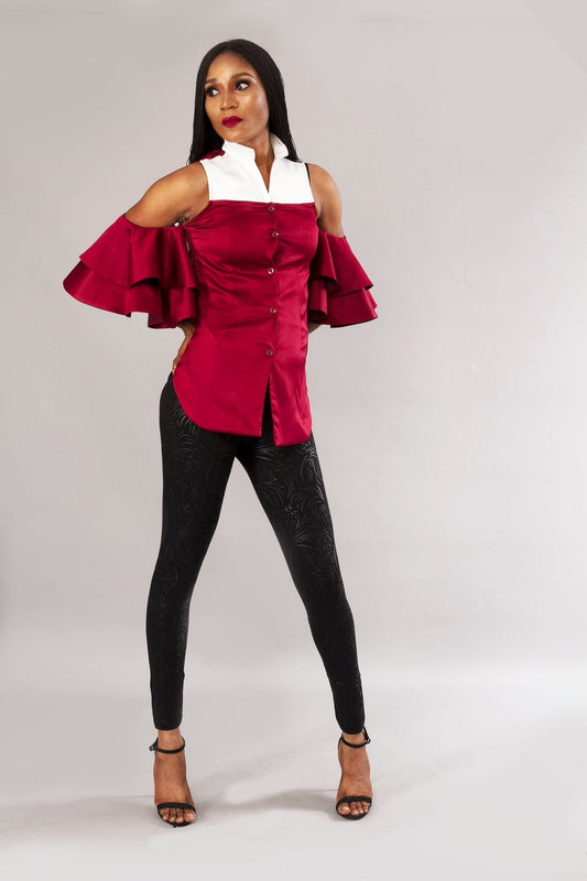 Haut de soirée ajusté à manches froides bordeaux blanc