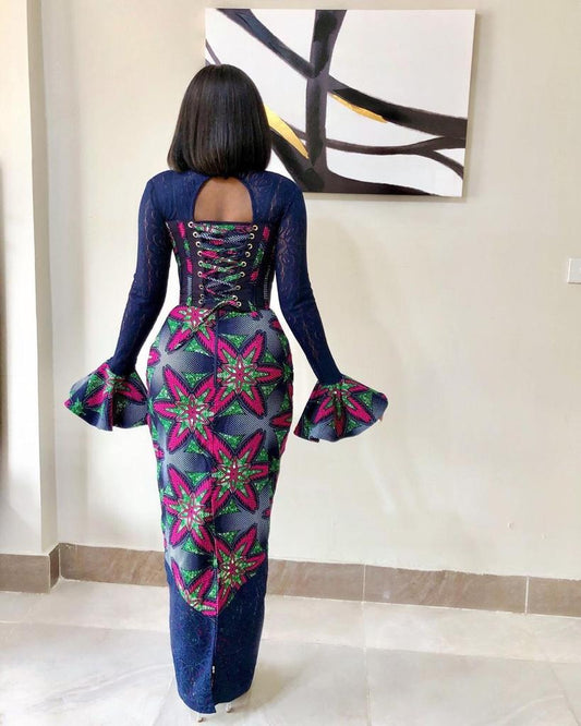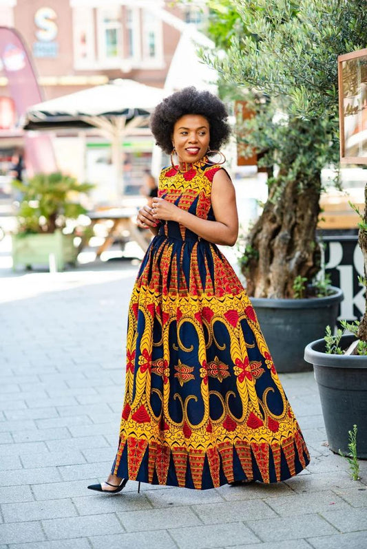 ROYAL BLUE AFRICAN ANKARA IMPRESSÃO VESTIDO MÁXIMO LONGO