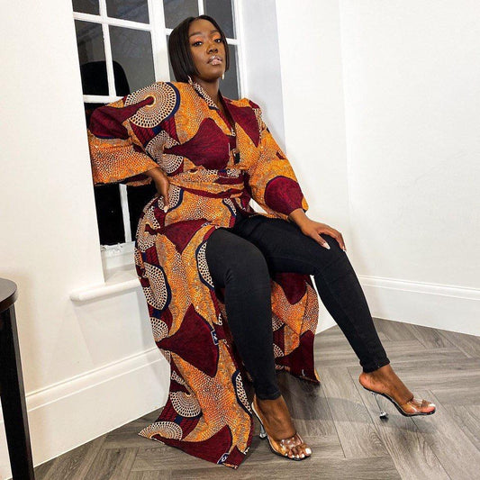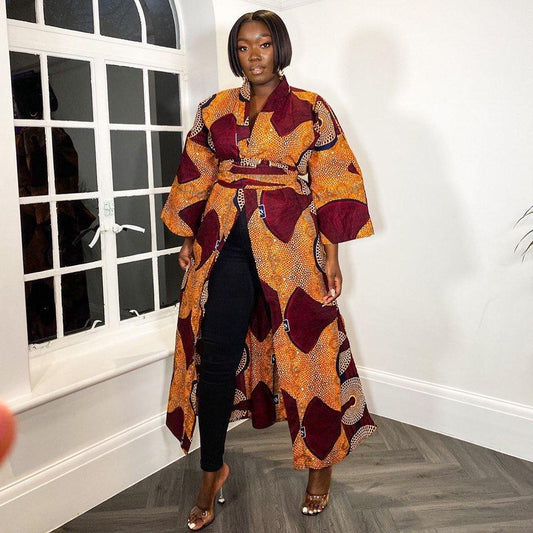 Ensemble de veste kimono grande taille à imprimé africain Ankara rouge orange