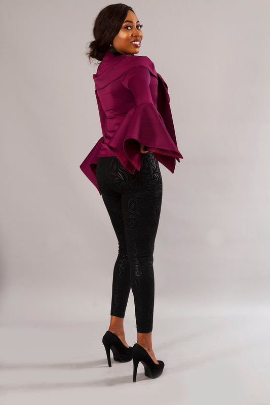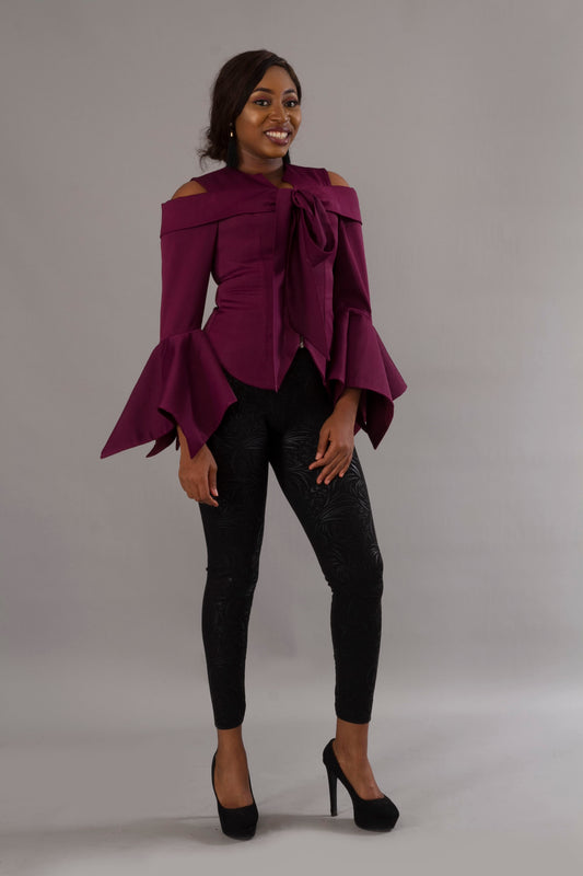Haut de soirée ajusté à manches froides bordeaux blanc