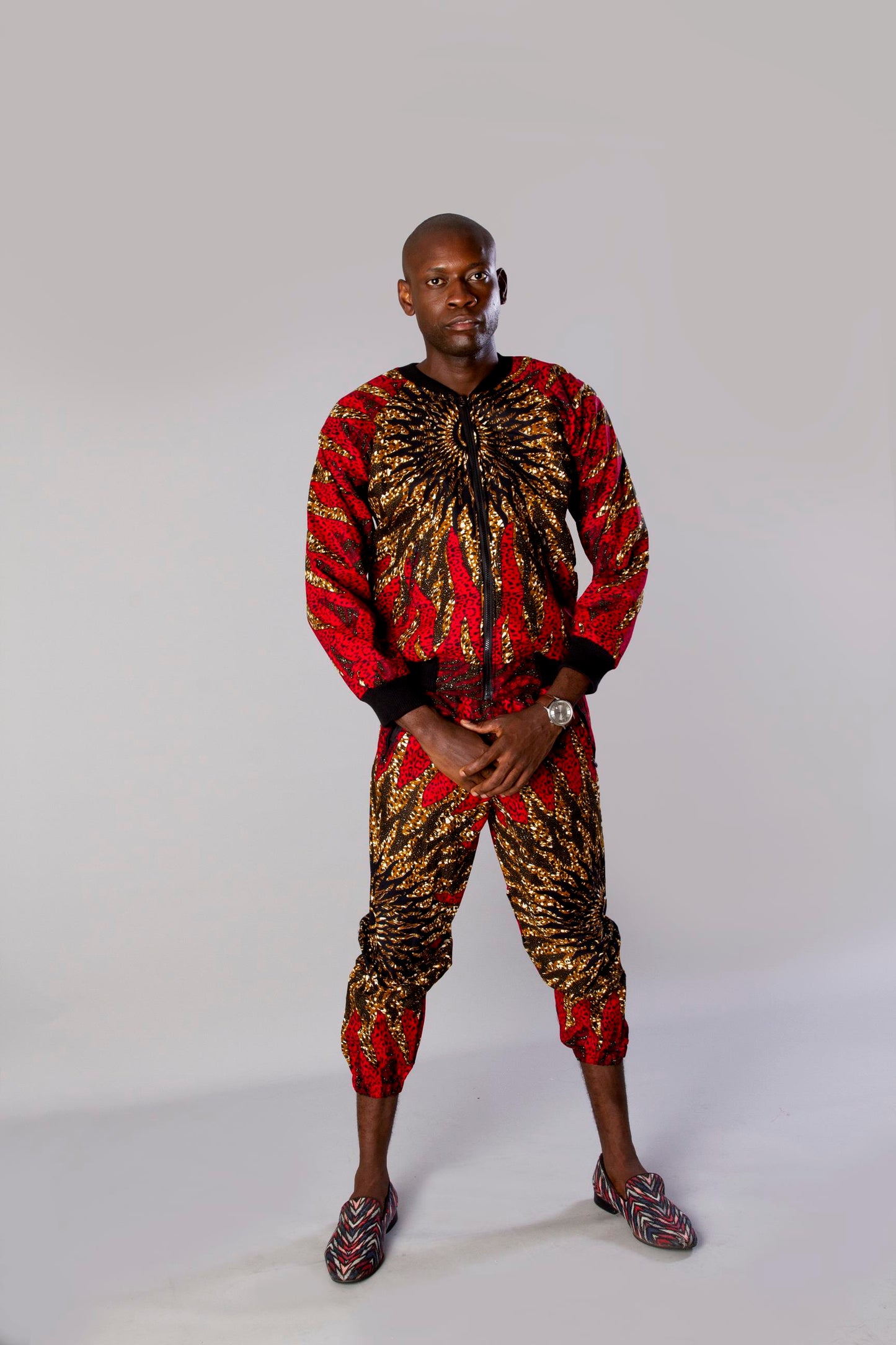 Casadelamo men’s Ankara bomper jacket. This bomper is the perfect transitional piece and would look great teamed with a skinny jean and sneakers or its complete set. The bumper jacket and trouser features a front zip fastening, two front popper fastened pockets and ribbed collar, cuffs and hem. Inside, the jacket has a contrast thick lining. The jacket is finished with pocket detailing and suitable for cold weathers.