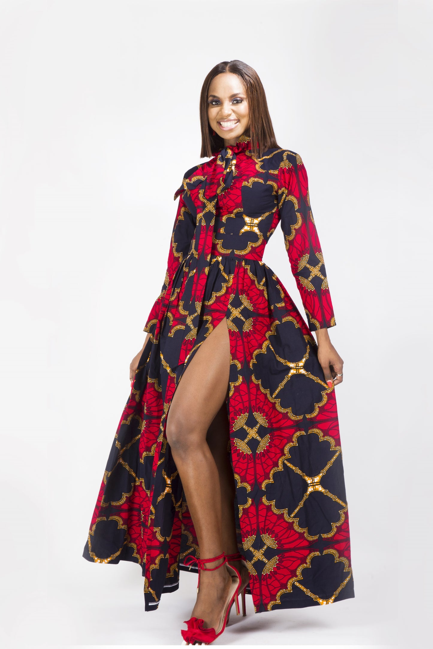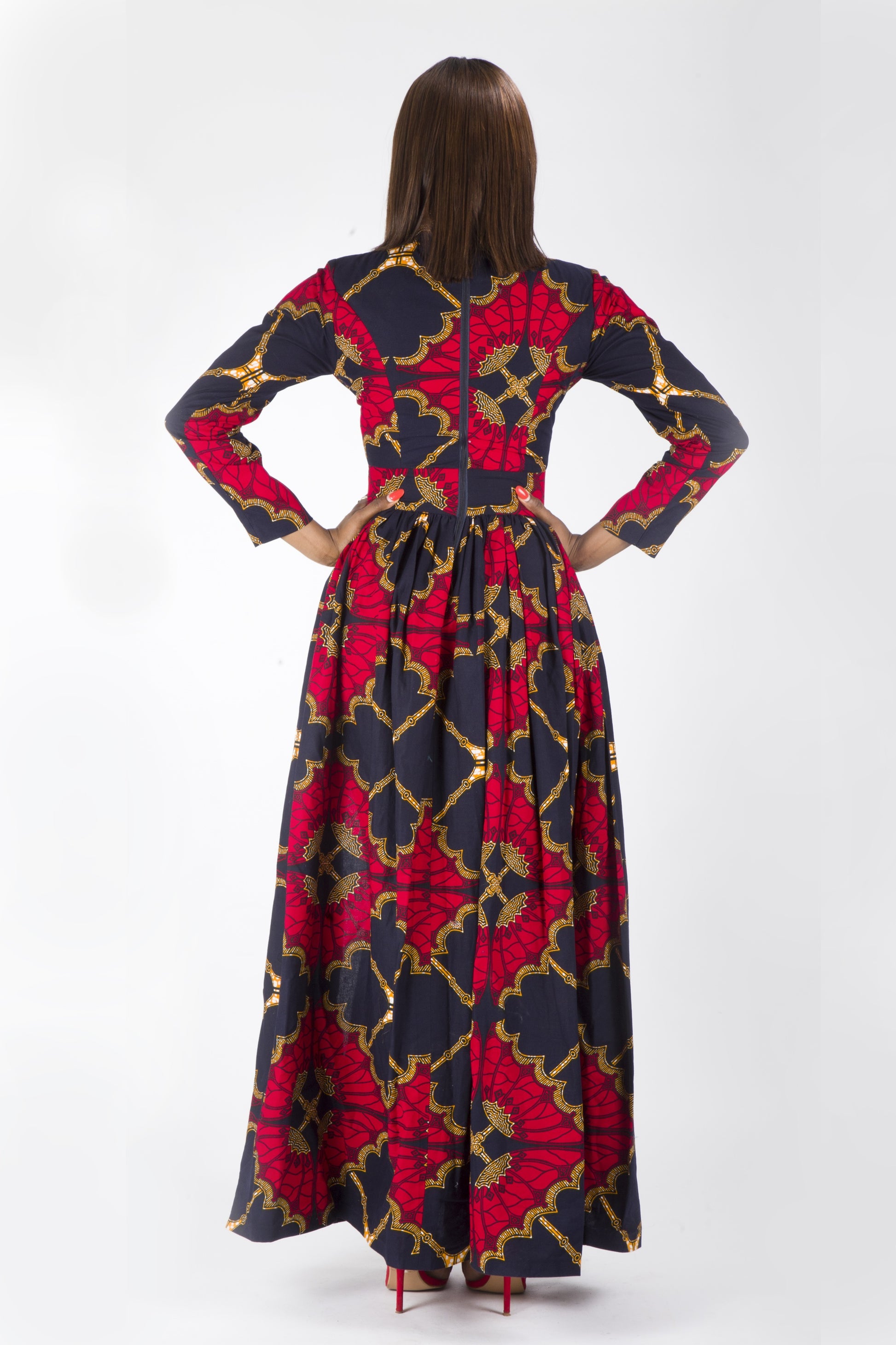 Red Blue Long Sleeve African Ankara Print Maxi Dress is so gorgeous and classy. It is suitable for all occasions and you can be sure to stand out from the crowd.
